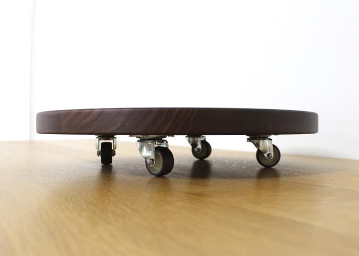 落ち着いた色彩が美しいウォールナット無垢材を用いた、フラワープランターベースです。裏面にはキャスターを施し、移動も楽々。あたたかな雰囲気が植物にぴったりです。