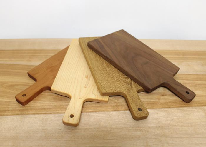 愛らしい持ち手付きタイプの総無垢・カッティングボードです。